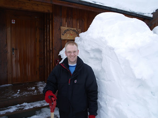 Endelig er det påskeferie, og som vanlig var det en god del snø foran hyttedøra. Gjett hvem som fikk jobben med å måke....